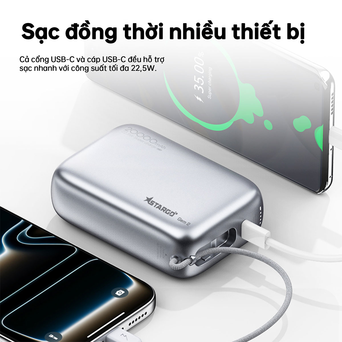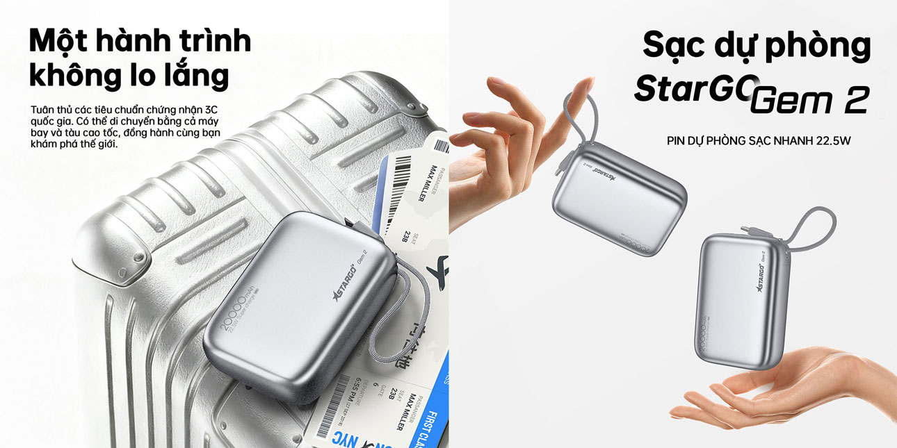 Trong thời đại thiết bị di động lên ngôi, việc sở hữu một chiếc sạc dự phòng dung lượng lớn, sạc nhanh và tiện lợi là điều không thể thiếu. Sạc dự phòng StarGO Gem 2 20000mAh 22.5W chính là lựa chọn lý tưởng dành cho người dùng hiện đại với thiết kế nhỏ gọn, hiệu năng mạnh mẽ và khả năng sạc nhanh vượt trội.